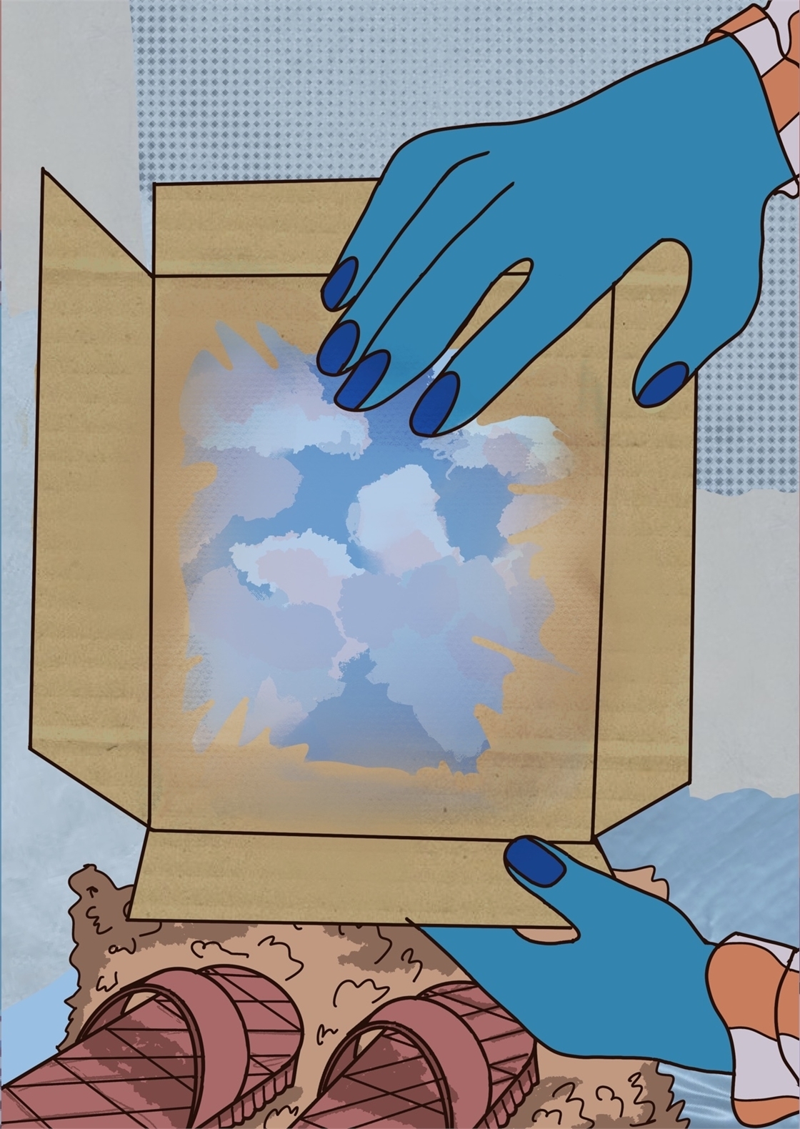 и изображениями неба, что символизирует спокойствие и умиротворение.